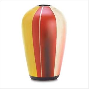 Bold stripes of vivid brights add a playful splash of color to this funky, chunky ceramic vase! Add an eye-catching arrangement of unusual botanicals for an instantly artistic, eclectic display! Ceramic. 5 1/2 inches diameter x 8 1/2 inches high. Decorative purposes only.