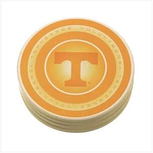 Put your "volunteer spirit" right on the table for everyone to see! Absorbent sandstone-finish ceramic coasters are boldly emblazoned with the legendary Tennessee "T". A fitting tribute to those heroes in orange and white, and a nifty way to protect your table from accidental drips! Ceramic with metal container. Each coaster is 4 3/4" diameter x 1/8" high. Set of 4.